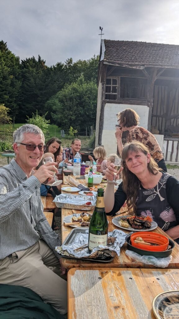 So instead we took the car and van, and found a cracking small campsite run by a Dutch-French couple. They provided a communal BBQ on Saturday evening, and some very smooth local champagne to wash it down – at 22 euros a bottle , a bargain.