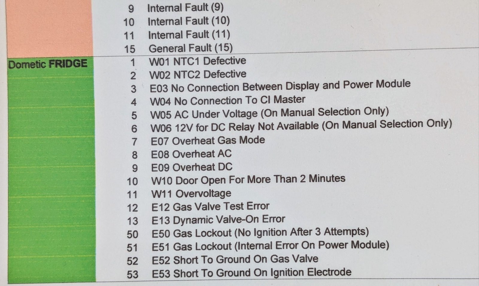 A W10 is kids stuff, and an E50 is easy to create (every time a new gas bottle is attached). And E03 pops up a lot if you’re the sort of incompetent DIY tinkerer who shorts out control panels by bodging a solar charger installation. But this week it was a new entry into the chart for E51, followed by an infinite succession of that old favourite, E12.  It’s particularly impressive that Gas-related errors continue to occur even with the energy source switched to 240v electric.