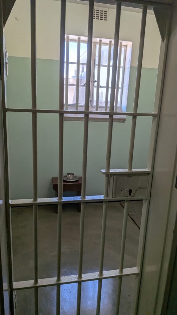 - Showed us the the various interior sections – inc the block where the Rivonia Trial group were kept and hid their Long Walk to Freedom materials under the plants in the garden.
