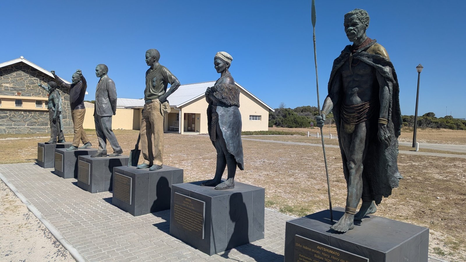 At the entrace to the prison is a set of statues of some notable prisoners. The spear on the right is held by Ocho Mayo – first political prisoner of RI : imprisoned for the ‘crime’ of stealing his own cattle back from the Dutch settlers. Mandela is third from right, with a spade.