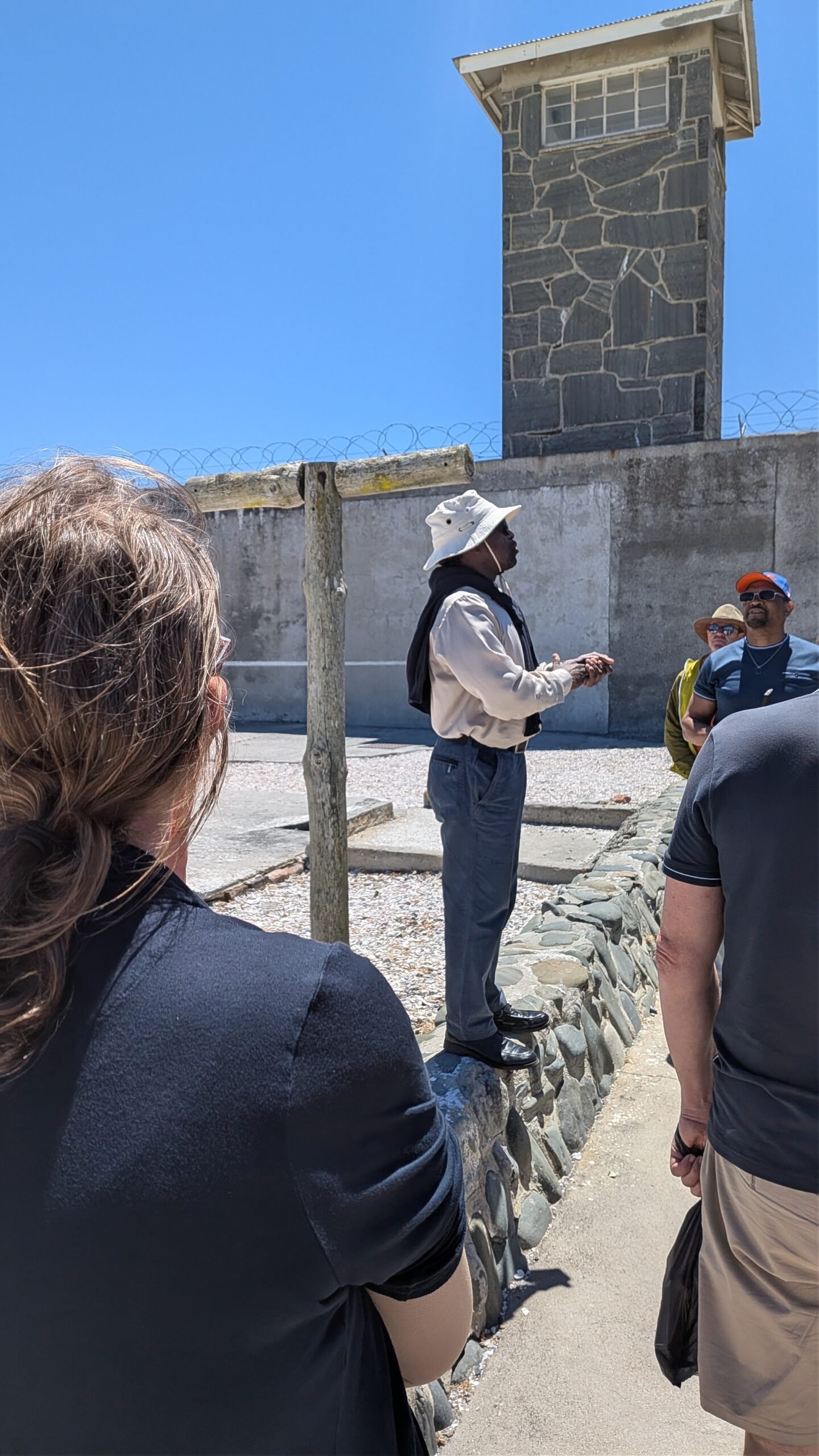 - Showed us the the various interior sections – inc the block where the Rivonia Trial group were kept and hid their Long Walk to Freedom materials under the plants in the garden.