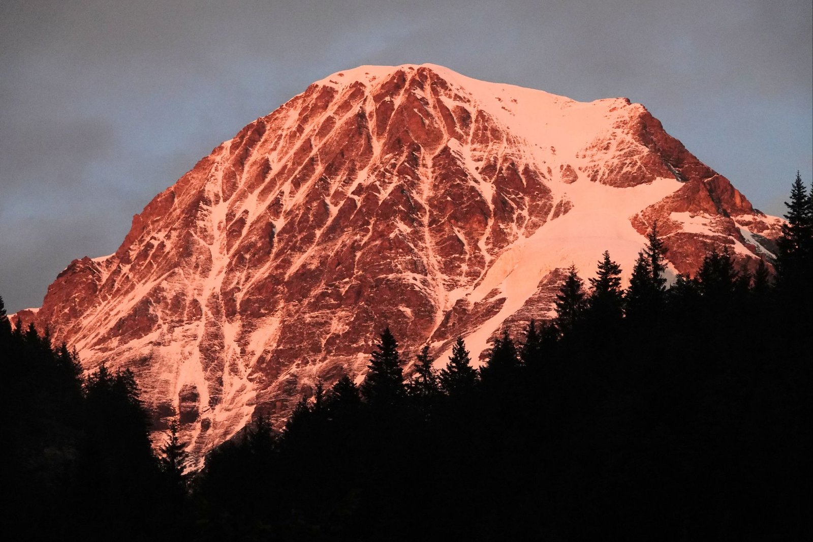 A few hours after we’d got back, the downpour finished its performance, packed up and moved off, leaving a more mellow sunset. I took this telephoto shot of the Mönch peak from our campsite , at 9:30 pm , lit up by the last rays from the west.