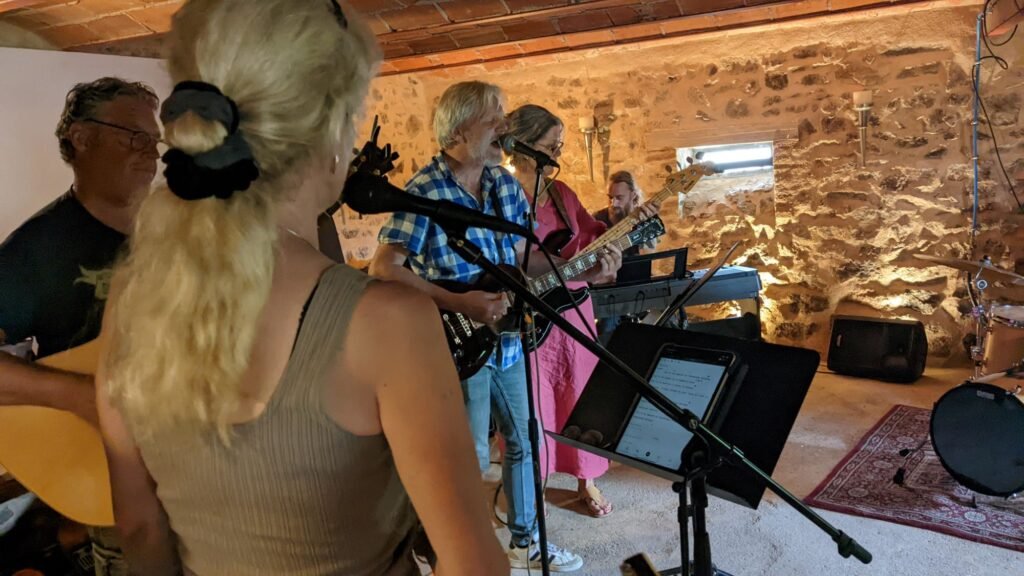 Then, with a rainy afternoon predicted, the campsite owner told us there was an open mic/ jam session organised in nearby village of Menassère. Anything to get us out of earshot. We were over there before you could say “Country Roads”