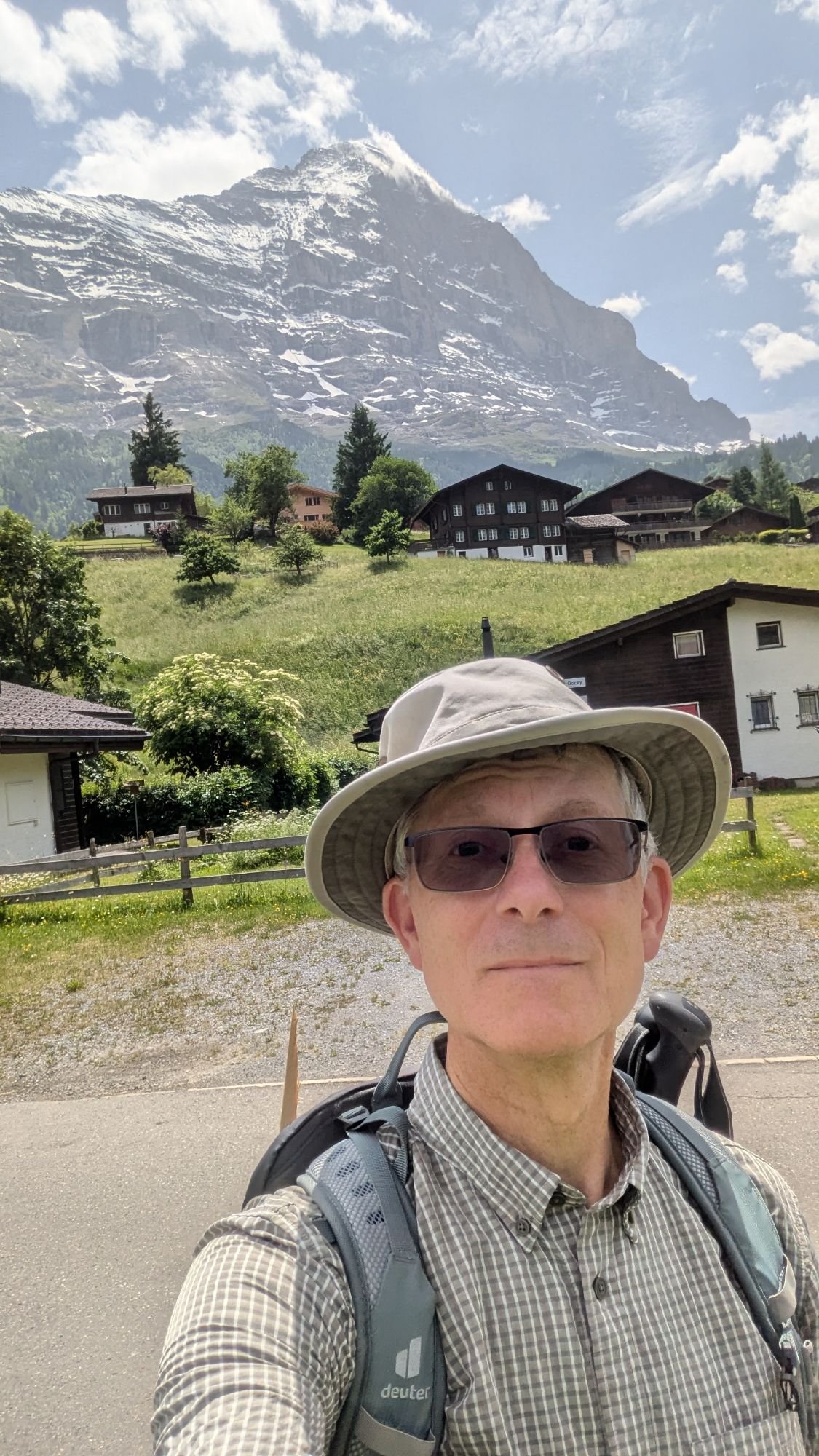 It’s hard to say with any certainty how long this hike was , over to Burglauenen from Wengen – maybe somewhere round 10 miles ? Because, a short way into it, the GPS on my phone went potty ( a solid-state/ software version of Bits Dropping Off ?) and kept claiming we were way north of our real position. At the time, I thought this was due to us being on the north side of a very steep cliff wall, which might have blocked line of sight to satellites …. But if so, why did this persist once we were back in open territory?