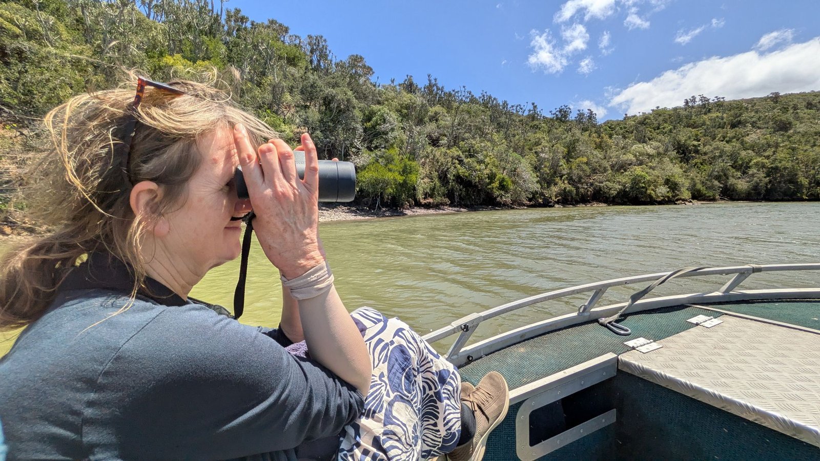 Our last full day here on the Eastern Cape. Thought we would try something different – a river cruise up from the Kenton-on-Sea coast with bird spotting potential. ‘ Cruise ” is a grand word for a small boat with an outboard motor , but it was very scenic.