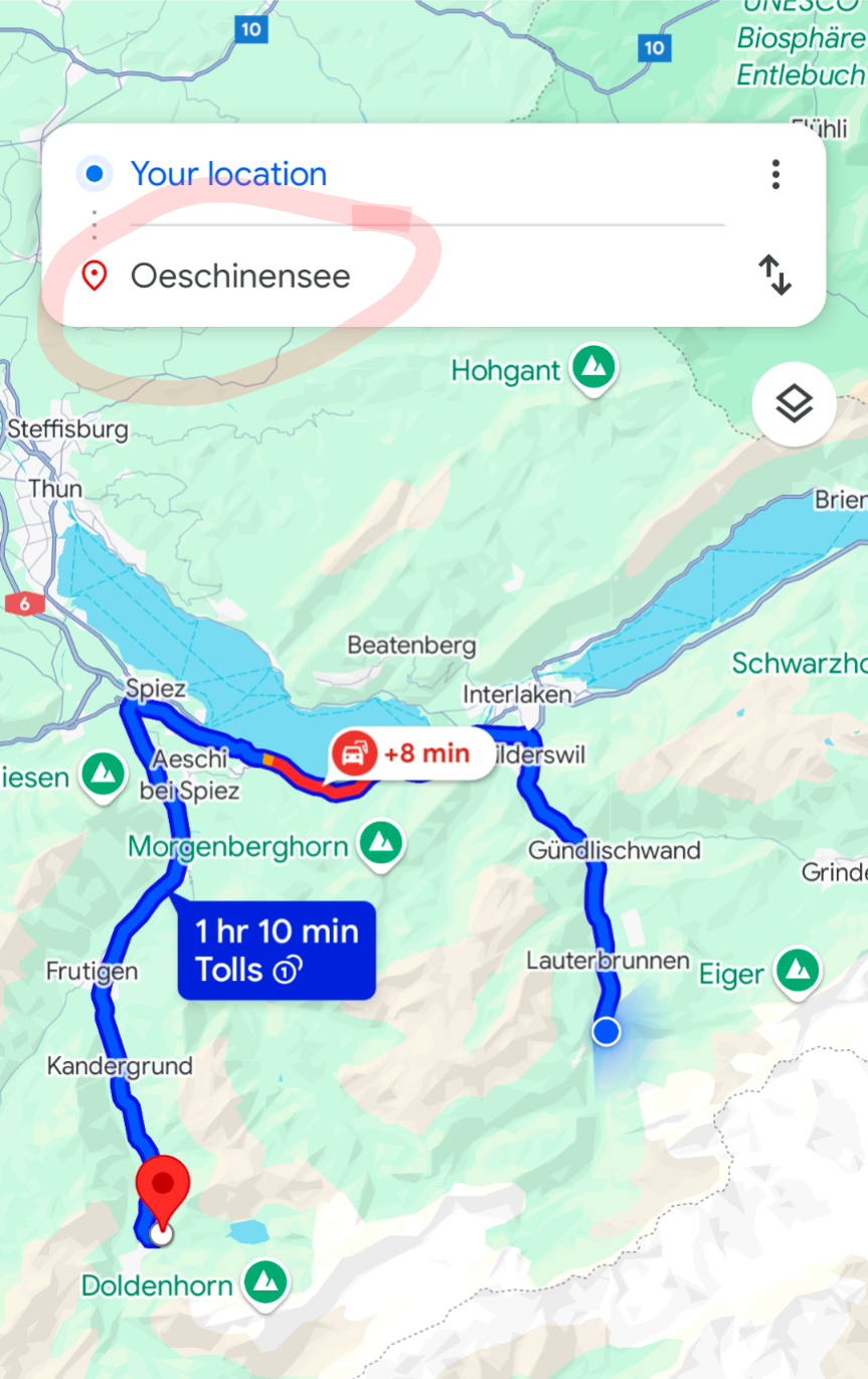 Got cable car up from Kandersteg before joining well marked trail up above the lake, then dropping down beside it for the way back.