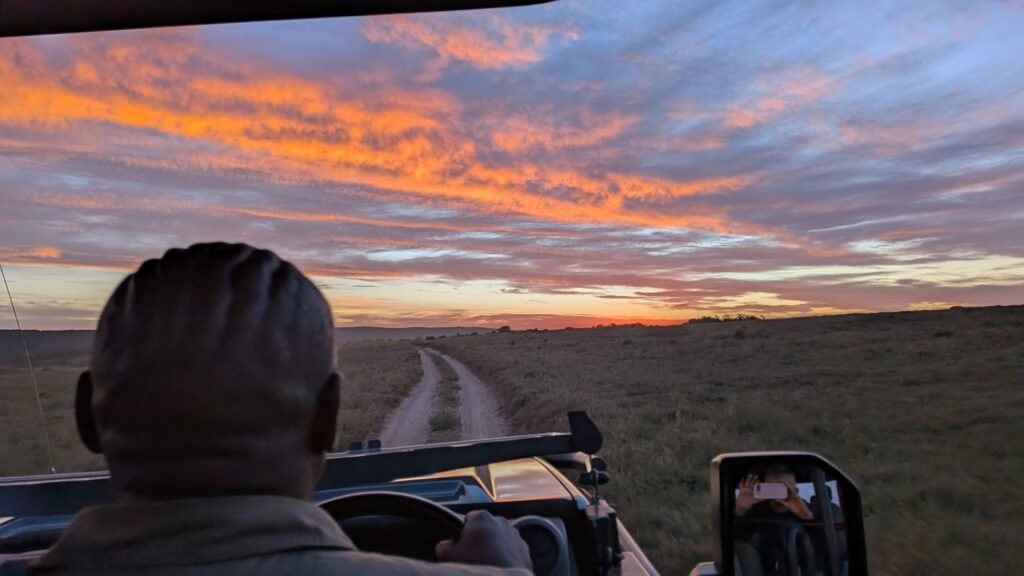 Since we delayed our start from the usual 3pm, we were heading back through a glorious sunset, and Ouboet is feeling very relaxed. Seeing Raheem as a black vet has made a big impression.