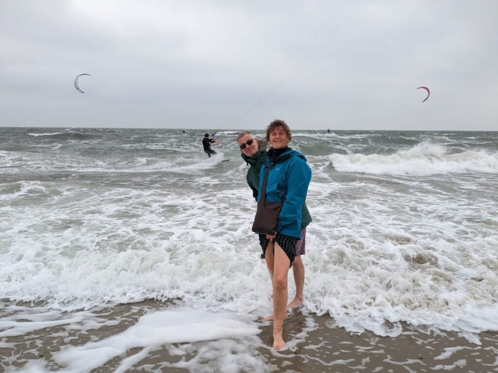 Spent a happy day tootling round Veere together, and even dared a paddle in the north sea where fearless windsurfers / kitesurfers were scudding across pretty wild waves ..