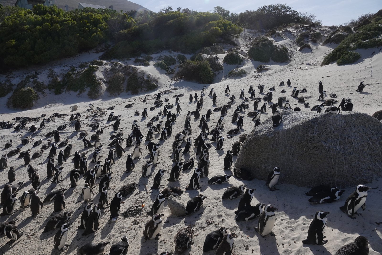 Then we watched African Penguins, swarming over Boulder Beach –  terribly cute!  Originally known as Jackass Penguins owing to the male’s braying call