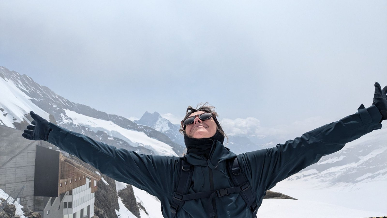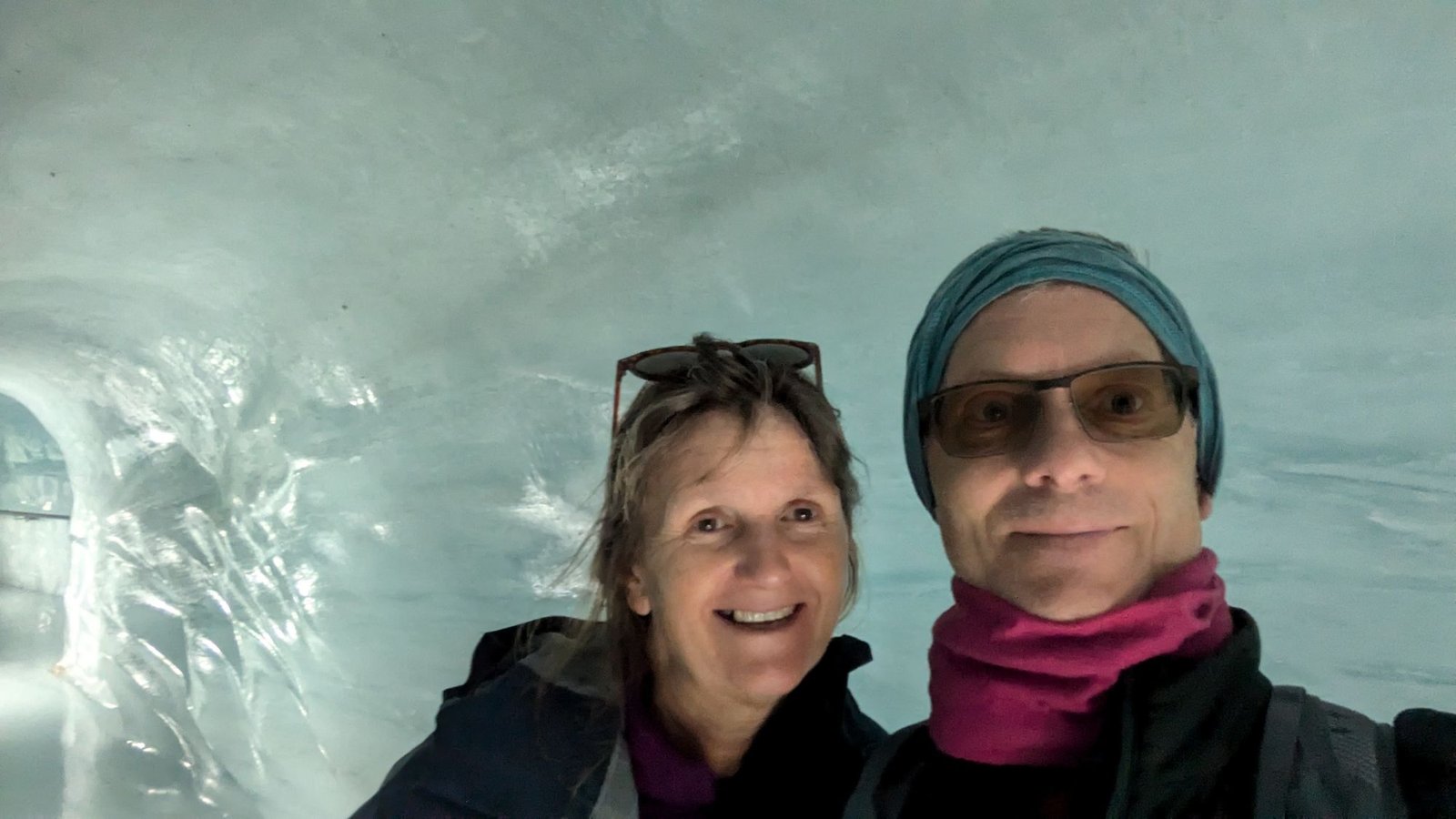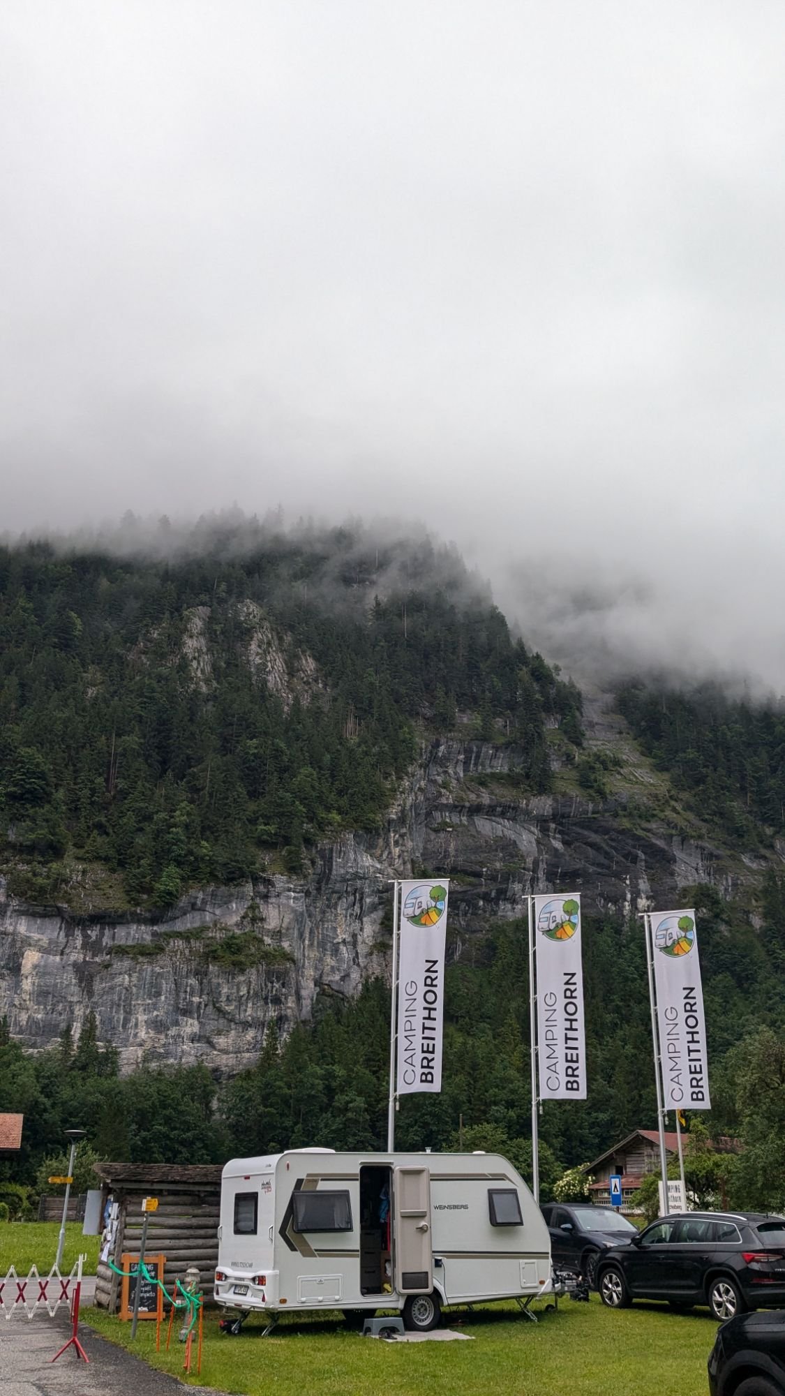 Now we realise our pass will get us up without a “mandatory reservation” it’s a freebie, so worth trying in case the clouds break, On the train up we get chatting to a family from Nevada. When we tell them about our caravan, they say “oh we have a trailer back home” – and produce pictures of a dual axle monstrosity, I would guess over 30′ long, with two bedrooms and a lounge. Perfect for a weekend in the Dales .