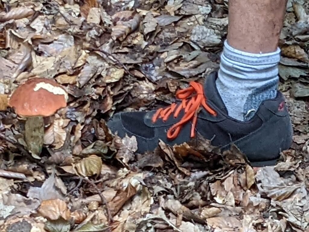 Parasol (?)No idea what it is,nice red colour though Boletus and cyclist footMaybe a grisette ?Boletes … A bit past it Ink caps in VosgesFinally – Cep / Porcini / Penny bun !! Cooked and eaten, delish.Amanita ? Beefsteak fungus ? Large scaly puffball on the path I think this is a very young inkcap Flying saucer ? Loire valley.That’s all, folks