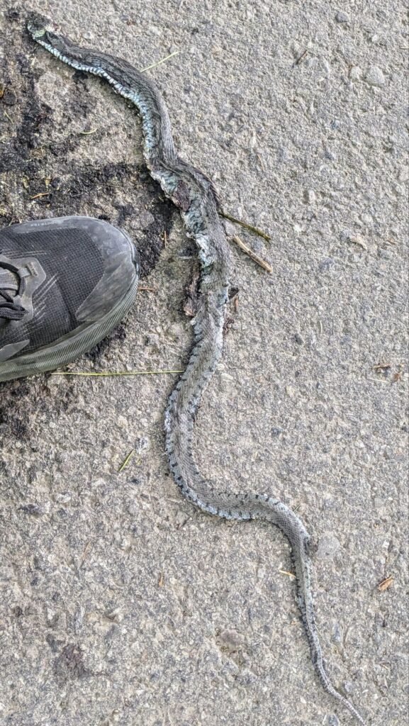 Alpine Chough, Jungfrau Alps, SwitzA. Chough ( departing view) Water Pippit ( a/c to Merlin app ID of its song) Red Holstein (and friend), MürrenGrass snake – Natrix Helvetica (extant)…..and very much deceased (Grindelwald)Alpine Blue ( beautiful plumage) OeschinenseeSwallowtail OeschinenseeRed Holstein ( real) Oeschinensee